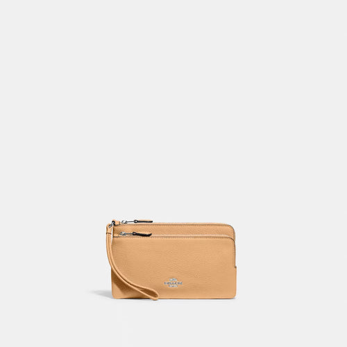 Elevate Your Style with the Coach Pebbled Leather Double Zip Wallet in Latte