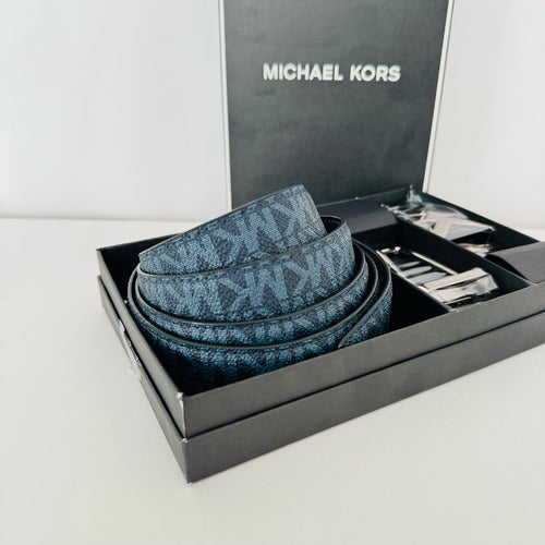 In the realm of fashion, the right accessories can transform any ensemble from ordinary to extraordinary. Recognizing this, USALOVESHOPPE is thrilled to present a luxurious addition to your wardrobe: the Michael Kors 4 in 1 Dress Belt Box in the elegant shades of Admiral and Pale Blue (36H9MBLY4V). Perfect for those who appreciate versatility and style, this set is a testament to the refined aesthetic and craftsmanship Michael Kors is renowned for.